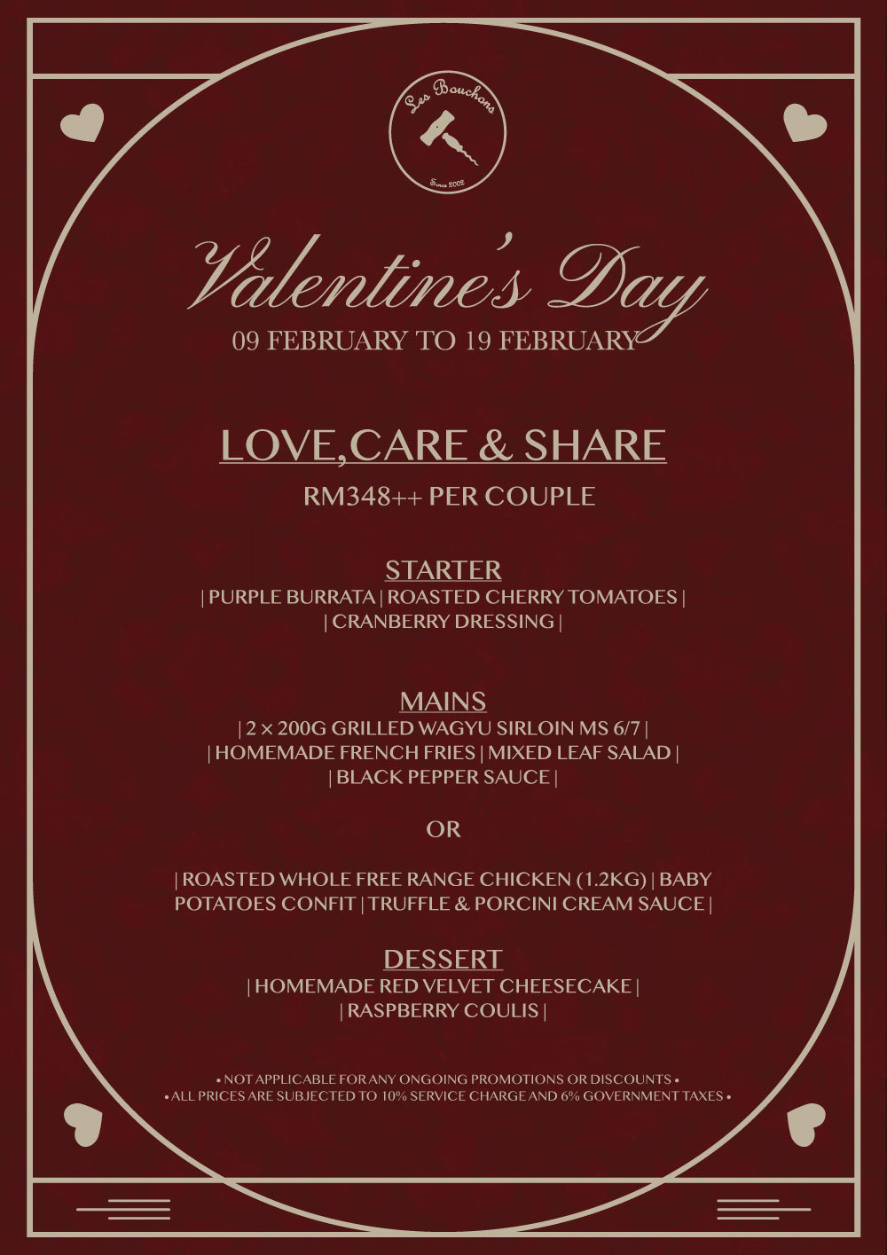 • RM348++ per couple • Available for dine-in from 9 to 19 February.