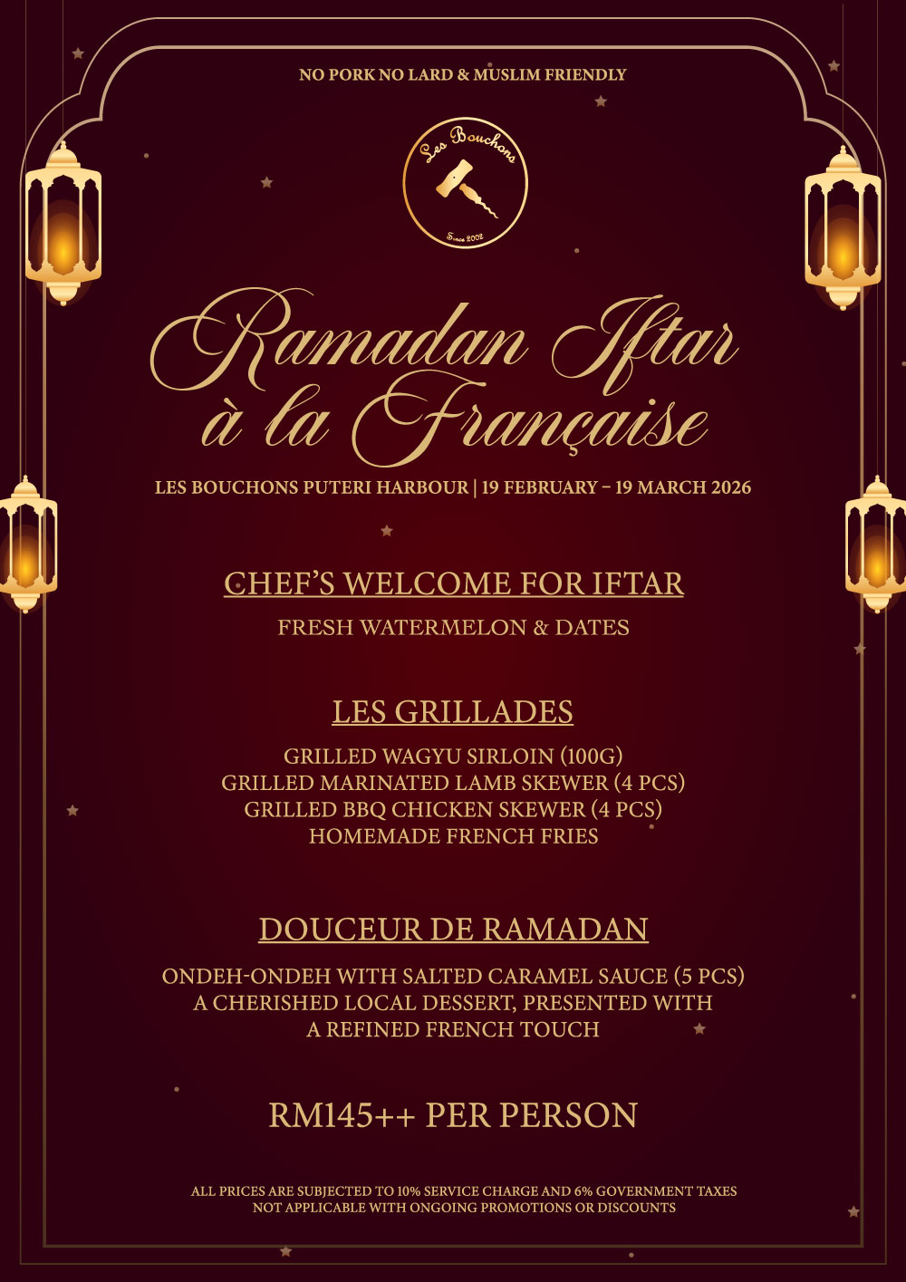 Les Bouchons Puteri Harbour presents Iftar à la Française, where French culinary tradition meets the warmth of breaking fast together for RM145+ per person🍽